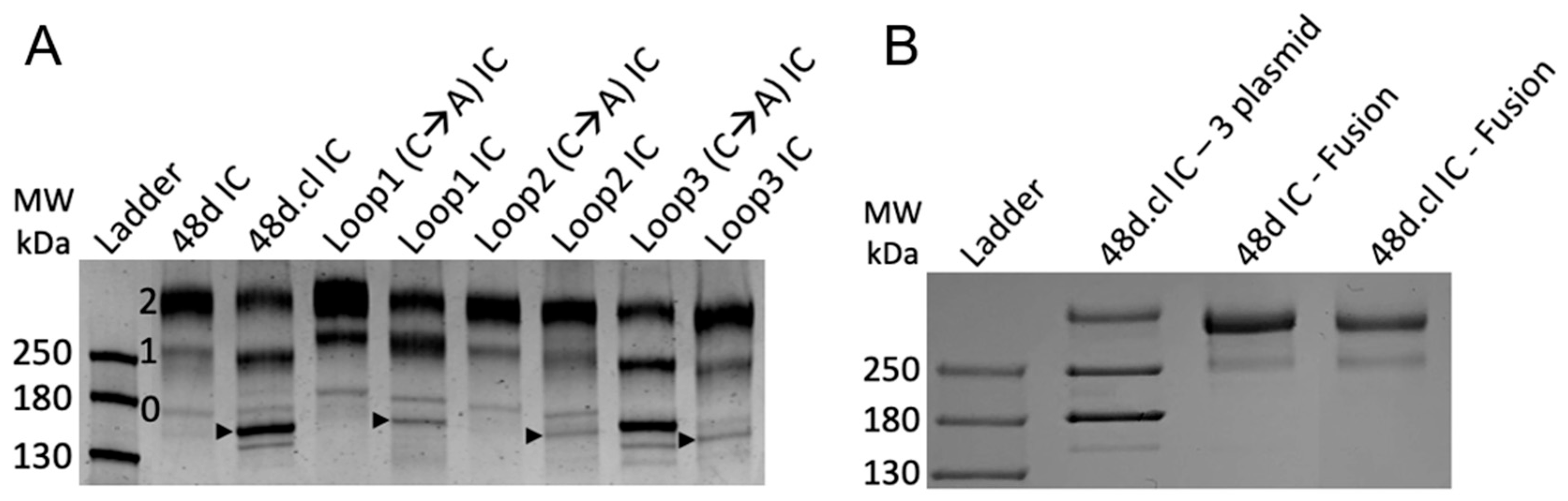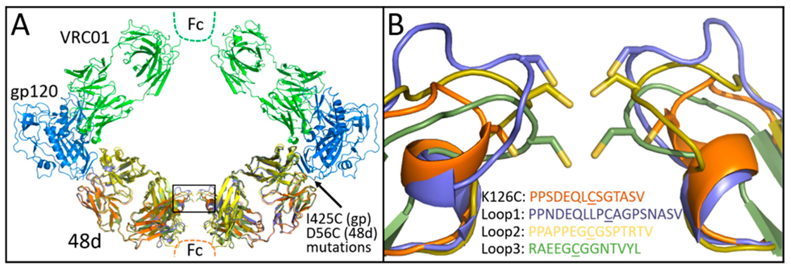 3.2. Design of gp120 + 48d Heavy Chain Fusion Proteins