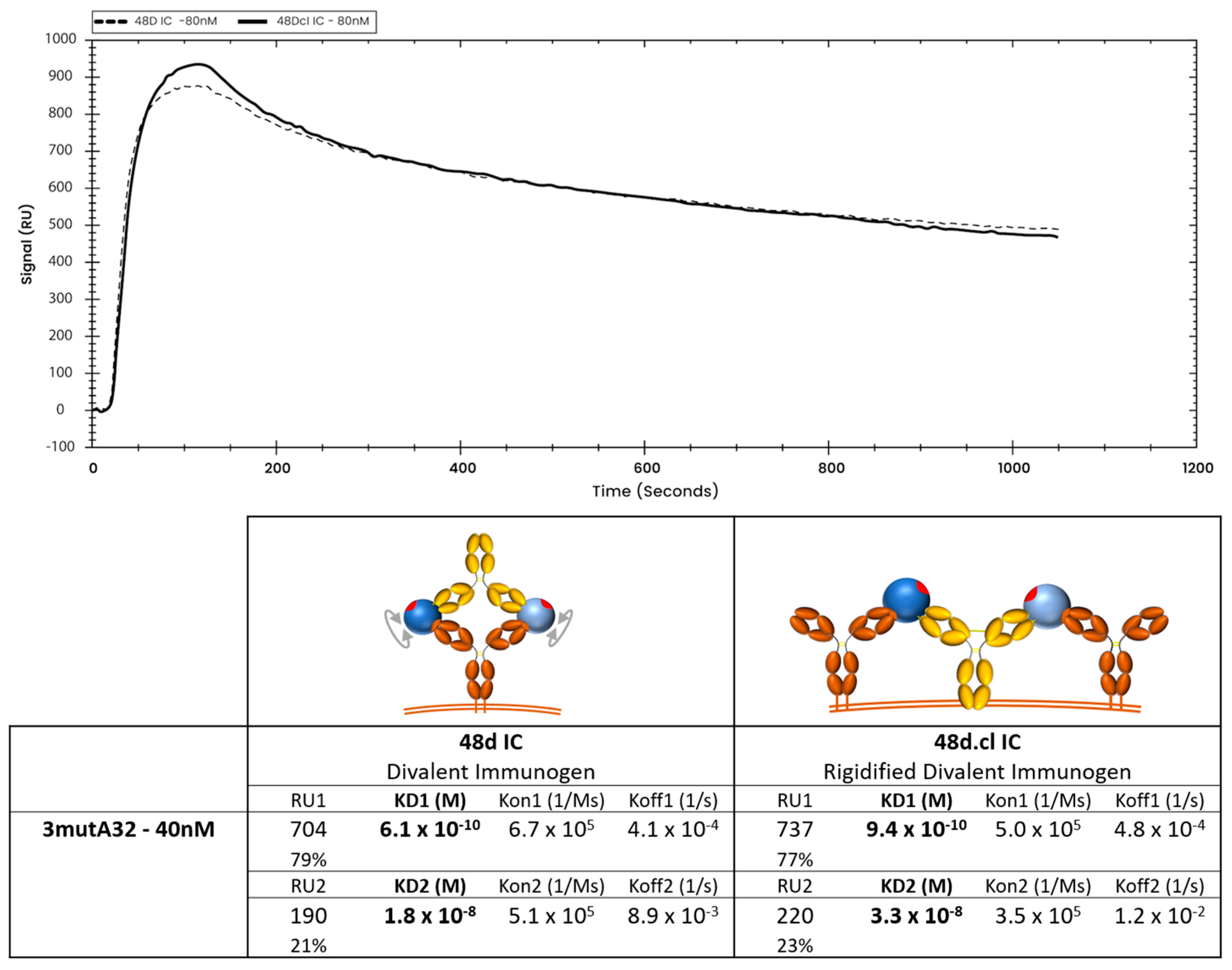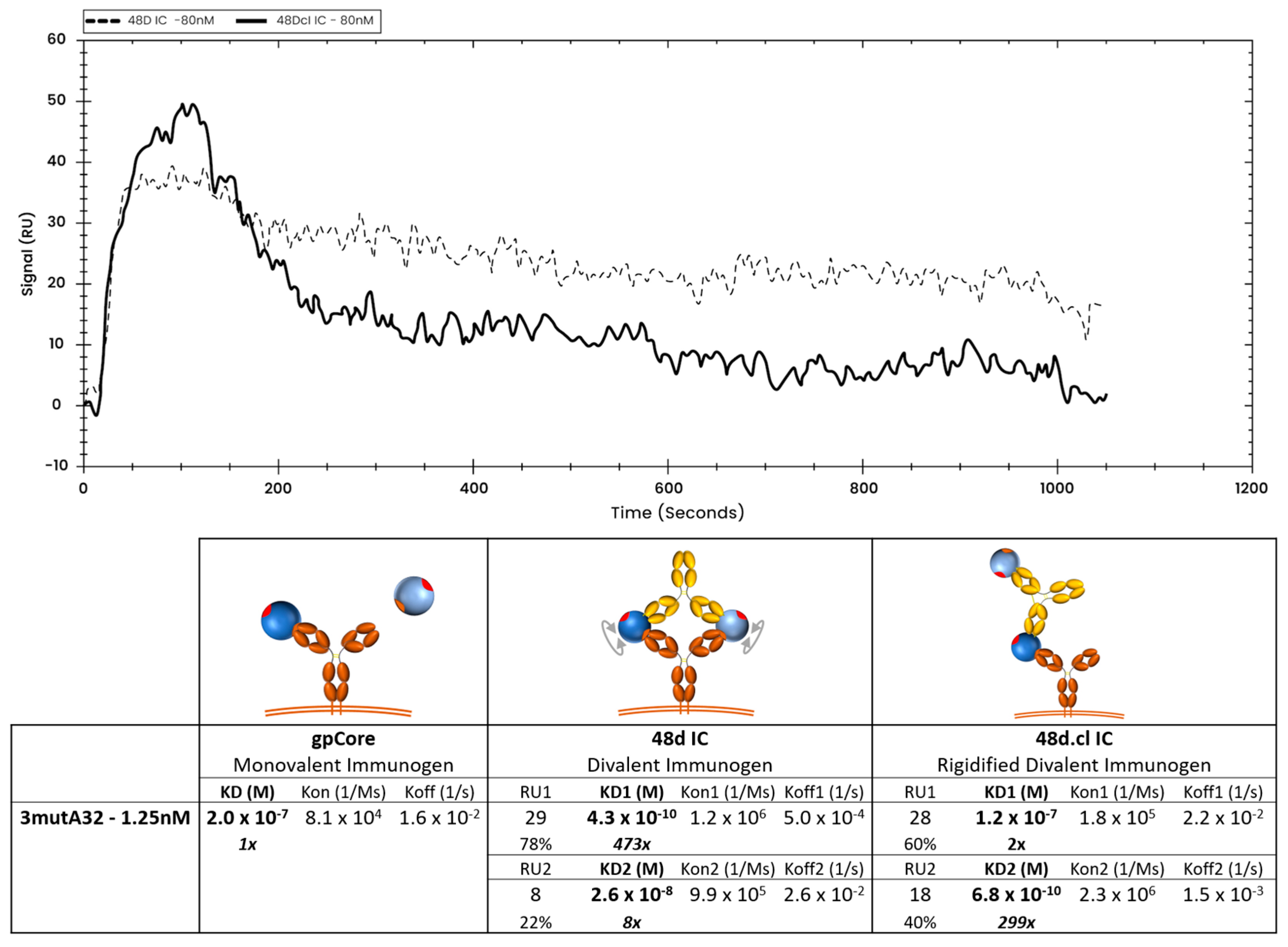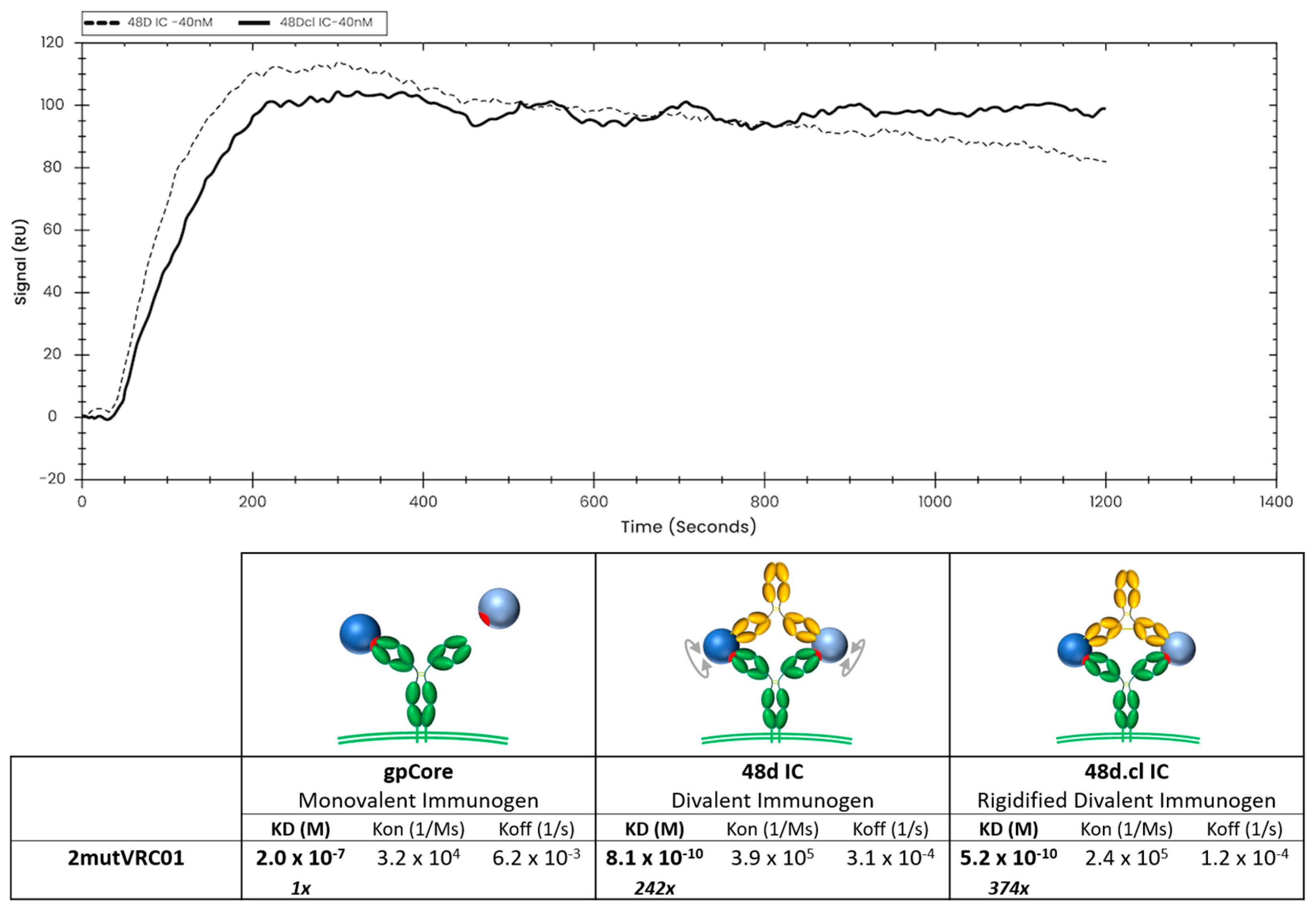 3.5. The Divalent Immunogen Binds a VRC01 Revertant with Significantly Higher Avidity than an A32 Variant of Similar Monovalent Affinity