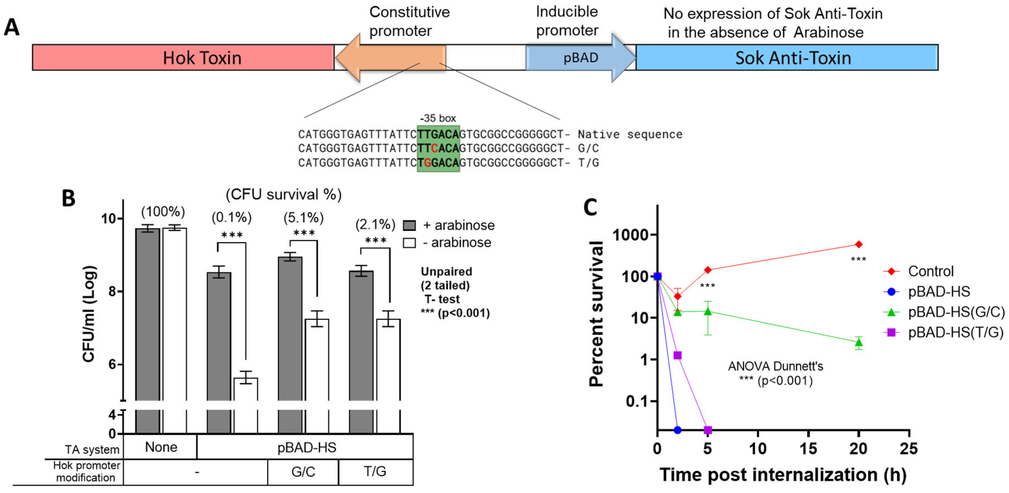 | pBAD-HS pBAD-HS (G/C) pBAD-HS (T/G) | LB + arabinose (0.2%) | LB |