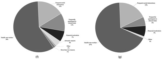 A comparison between the indicated reasons provided by participants who contacted us within the first three days and the reasons provided by the ones who contacted us in the remaining time period shows a similar distribution (Figure 2g).