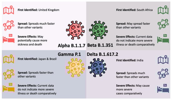 In many parts of the globe, the variants now constitute the majority of the COVID-19 cases [9]. Figure 1 illustrates the four variants of concerns in the United States (US) along with their first detection location, level of spread, and effects using data from the Centers for Disease Control and Prevention (CDC) [10].