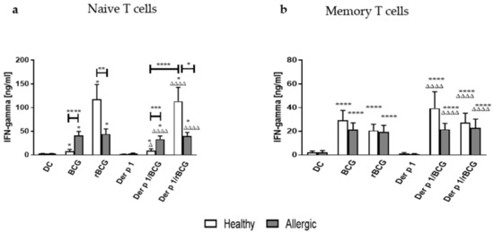 3.3. IFN-γ Production by CD4+ Naive and Memory T Cells Cocultured with Der p 1-Treated DCs in the Presence of BCG or rBCG-hIL-18