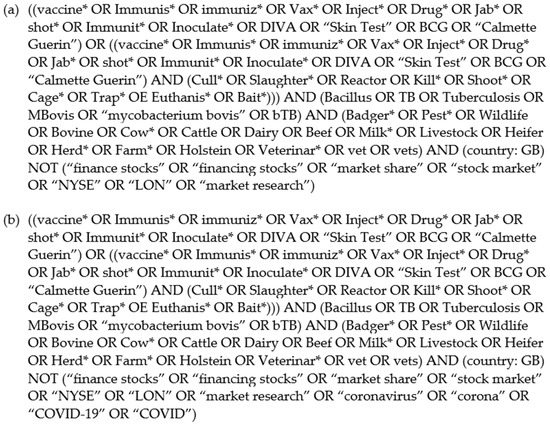 The primary objective of this study was to analyze online public attitudes and perceptions towards elements of a revised government strategy to achieve bTB-free status in England by 2038 [14]. We focused on two announcements (5 March 2020 and 22 July 2020) of the introduction of a bovine vaccination program using the Bacillus Calmette-Guérin (BCG) vaccine, the phasing out of badger culling, and increased use of badger vaccination. Digital and social media posts surrounding these announcements were evaluated and a comparative qualitative analysis was performed to identify structural gaps between the government policy statements and public understanding. Given our ‘online’ status as a society, it has been recognized that listening to both digital and social media conversations is paramount to gain public confidence and respond successfully to public concern [15]. Understanding public perception in real-time is crucial to relay appropriate and efficient responses to ensure a more thorough and uniform understanding of the government’s messages, and to debunk potential misinformation online. This was a vital analytical aspect of our study; providing insights into how communication gaps may be bridged between government announcements and the perceived messages understood by the public.