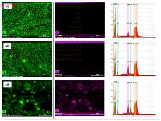 EDS images and elemental mapping of M1, M5, and M8 membranes.