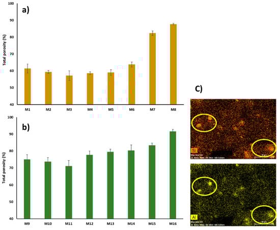 Total porosity for: PSF matrix (a), PSF/PVP matrix (b), EDS mapping analysis for M16 (c).