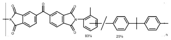 - Polotskaya, G.; Putintseva, M.; Pulyalina, A.; Gofman, I.; Toikka, A. Impact of endometallofullerene on P84 copolyimide transport and thermomechanical properties. Polymers 2018, 10, 1108. [Google Scholar] [CrossRef]