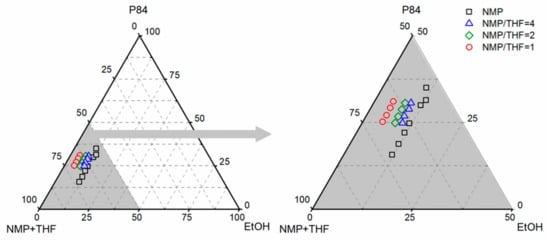 3.2.2. P84®/NMP/THF/EtOH Systems