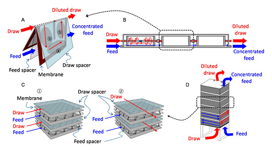 - Lee, S.; Kim, Y.C. Performance analysis of plate-and-frame forward osmosis membrane elements and implications for scale-up design. J. Membr. Sci. 2018, 550, 219–229. [Google Scholar] [CrossRef]