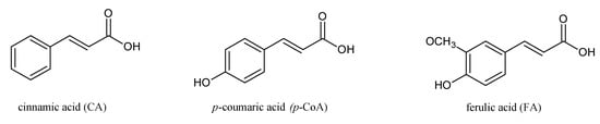 Rocher et al. reported the percentage of the undissociated forms of i.e., CinA, p-CoA and FA in pulvinar cells of Mimosa pudica L. at pH 5.2, which amounted to 70.4%, 58.6%, and 52.7% of the total pool of these acids respectively [18]. Considering the fact that only lipophilic neutral forms are able to cross the plasma membrane by diffusion, this parameter bears important information on this family of carboxylic acids [60].