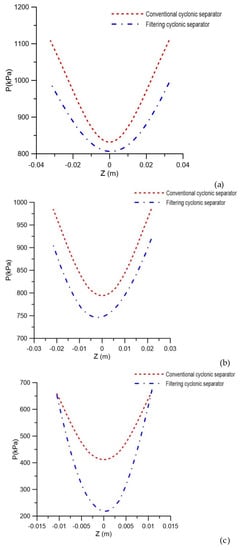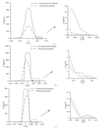 3.2. Comparative Study between the Conventional Cyclonic Separator and the Cyclonic Filter Separator