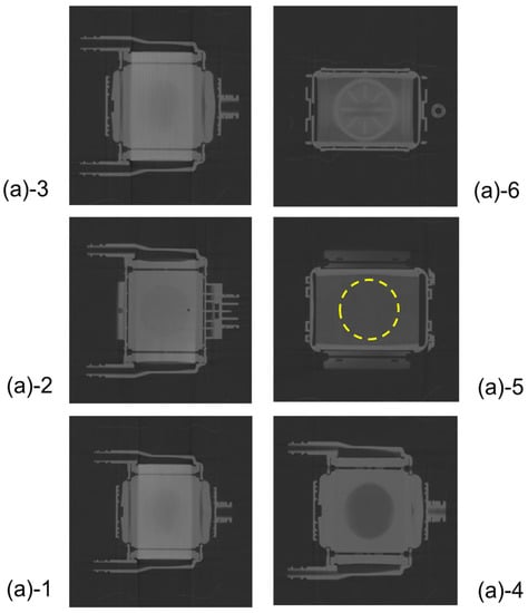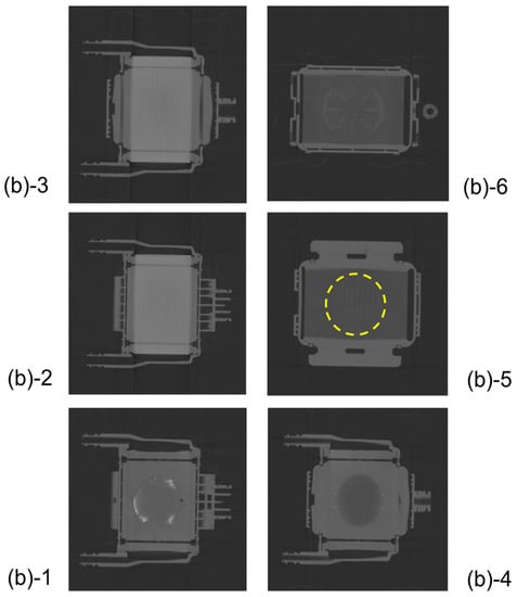 The imaging area obtained by the detector was decomposed with a pixel size of 2048 × 2048 to create voxels. Voxels change the color of CT images depending on the proportion of substances in a unit volume. When the substance density is high, it is displayed in white, and when there is a lot of air, it is displayed in black. The plane cut view image from the top was taken every 2 mm of height (thickness) of the devices.