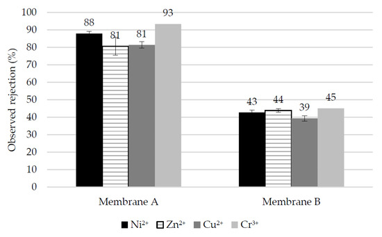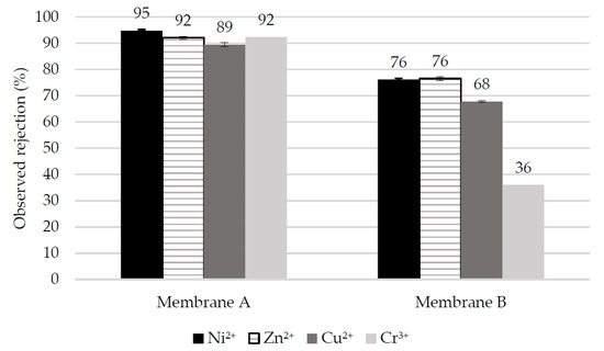 In all filtration experiments, rejection was calculated using Equation (1).