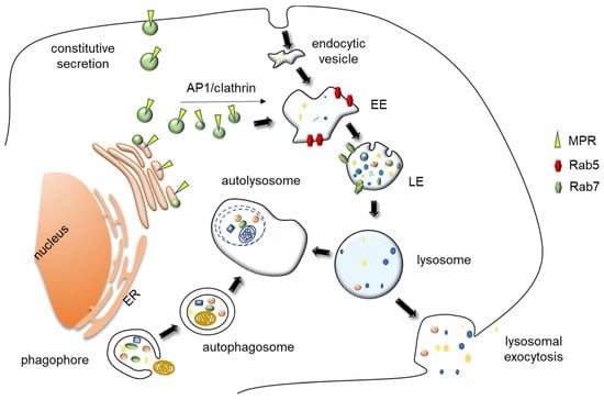 - Braulke, T.; Bonifacino, J.S. Sorting of lysosomal proteins. Biochim. Biophys. Acta 2009, 1793, 605–614. [Google Scholar] [CrossRef]