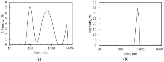The size distributions of the IR-PAN particles were determined by dynamic light scattering on a Malvern Zetasizer Nano analyzer (Malvern Panalytical Ltd., Malvern, UK). The test samples were prepared by suspending the particles in n-hexane (0.06 g of a sample in 10 mL of solvent).