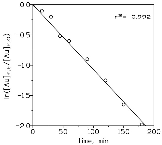 where Am support area, Vf is the volume of the feed solution, [Au]f,t and [Au]f,0 are the gold concentrations in the feed solution at an elapsed time and time zero, respectively, and t is the elapsed time.