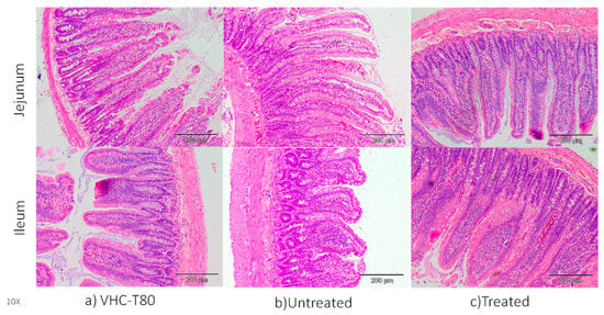 Representative diagram of H&E staining (10× magnification) of ileum and jejunum collected from rats (a) VHC (Tween 80) (b) Untreated (c) Treated BPA water and BPA water (n = 3–5).