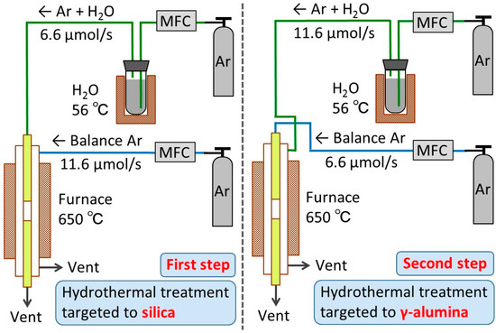- Nagano, T.; Sato, K.; Saito, T.; Takahashi, S. Hydrothermal stability of mesoporous Ni-doped γ-Al2O3. J. Ceram. Soc. Jpn. 2009, 117, 832–835. [Google Scholar] [CrossRef]