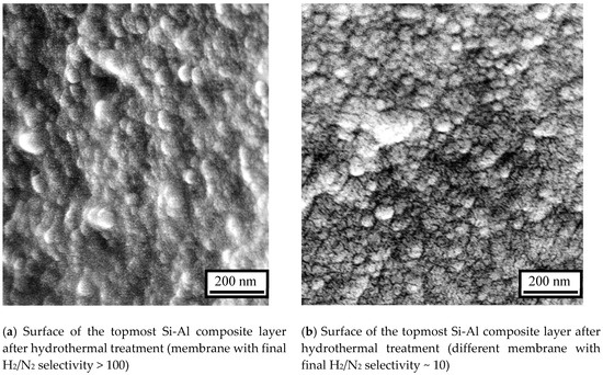 It should be noted, however, that the membrane performance (especially the H2 permeance) tended to be reduced after the long-term hydrothermal treatment, and it was not easy to maintain the above-mentioned performance over a long period of time. It was also remarkable that, when the initial H2/N2 selectivity was lower than 100, the membrane performance tended to deteriorate by the hydrothermal treatment, probably because of fatal pinhole enlargement. This provides a direction for improvement, that is the number of defects should be reduced at the outset.