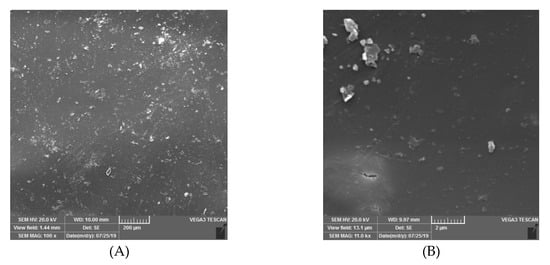 The surfaces of the membranes were characterized by using the scanning electron microscope (SEM) (Tescan VEGA 3-LMU, 20 kV, Brno, Czech Republic) equipped with an Energy Dispersive X-ray Spectroscopy (EDS). The samples were coated with a thin layer of gold to prevent charging.