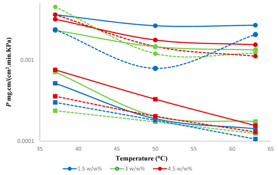 | P (mg·cm·cm−2·min−1·kPa−1) | Permeability |