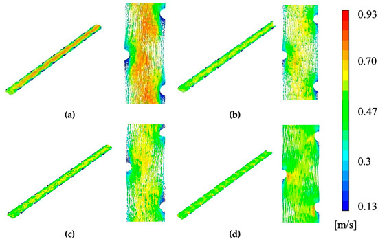 3.3. Velocity Profile Analysis to Determine Spacer Effects on Fluid Flow