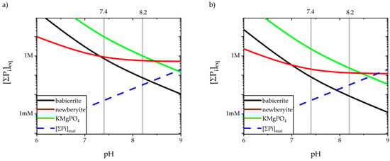 - Verbeeck, R.M.H.; De Bruyne, P.A.M.; Driessens, F.C.M.; Verbeek, F. Solubility of magnesium hydrogen phosphate trihydrate and ion-pair formation in the system magnesium hydroxide-phosphoric acid-water at 25 °C. Inorg. Chem. 1984, 23, 1922–1926. [Google Scholar] [CrossRef]