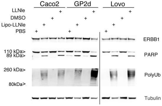 3.4. LLNle-Liposomes Inhibit Proteasomal Degradation and Induce Apoptosis in CRC Cell Lines in a Fashion Similar to Free LLNle