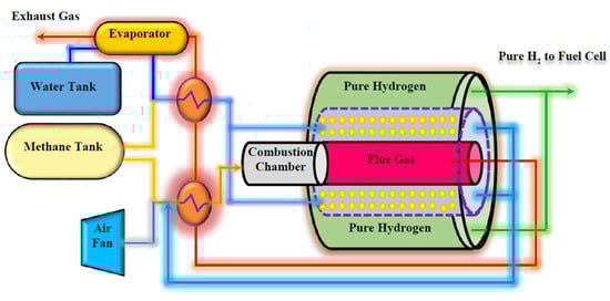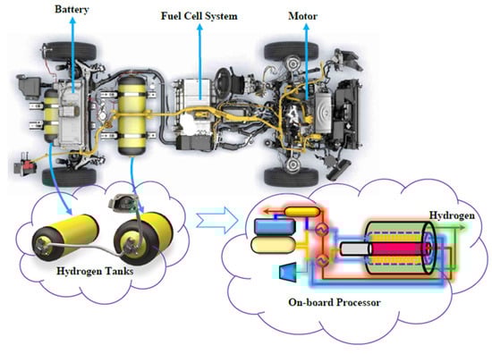 The proposed system could be hence replaced with the proposed innovative on-board H2 production system (Figure 6). It should be mentioned that the methane consumption is proportional to FCV speed. Therefore, a fuel injection system should be applied to set the amount of methane injected to the on-board processor.