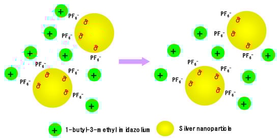 Silver nanopowder (<100 nm, 99.5%) was purchased from Aldrich Chemical Co (St. Louis, MO, USA). The ionic liquids 1-butyl-3-methylimidazolium tetrafluoroborate (BMIM+BF4−, 98%) and 1-butyl-3-methylimidazolium hexafluorophosphate (BMIM+PF6−, 98%) were purchased from C-TRI Co (Gyeonggi-do, Korea). All the chemicals were used as received.