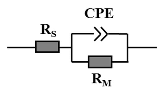 where represents the factor of proportionality and stands for the CPE exponent that characterizes the phase shift. For integral values of (), the CPE represents C, R, and L, respectively [39]. Through establishing a suitable equivalent circuit, the membrane physicochemical properties could be associated. For instance, R and C represent the ability to transfer ions and the ability to store electric charges respectively, and CPE could be related with the surface roughness, varying thickness or composition, nonuniform current distribution, and a distribution of reaction rates according to different situations [39].