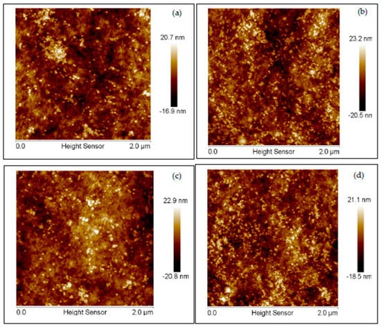 Figure 4. AFM images for modified membranes: (a) 1-min initiator immobilization and 1-h ATRP, (b) 5-min initiator immobilization and 1-h ATRP, (c) 1-min initiator immobilization and 4-h ATRP and (d) 5-min initiator immobilization and 4-h ATRP.