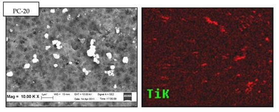 The initial water flux values for all the TiO2 embedded membranes are tabulated in Table 6. Note that for each type of membrane, the values reported were an average of three replications on independent sample membranes that were chosen randomly. The permeate fluxes indicate that the MMMs are relatively more permeable with the addition of TiO2; this is postulated to be due to (1) increase in hydroxyl groups on the TiO2 surface enhancing the permeate water flux [12] and (2) increase in membrane structure porosity, as substantiated by the water permeate flux performance of PC-20 MMM, despite it displaying more hydrophobic properties.