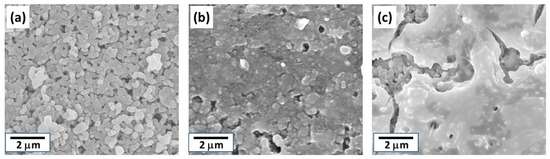 Cross-sectional and surface SEM images of the tubular substrates are shown in Figure 3. The tubular substrates consist of three different layers; fine-grained, intermediate-grained and coarse-grained layers, as shown in Figure 3a. The fine-grained layer comprising the outer surface of the tubular substrates was approximately 100 μm thick and consist of well packed alumina particles of several hundred nanometers as shown in Figure 3b. The spaces between the particles were mostly smaller than the seeds and no large defects could be found. This observation also supports that the relationships between seed size and substrate pores were adequate for effective seeding.
