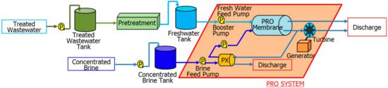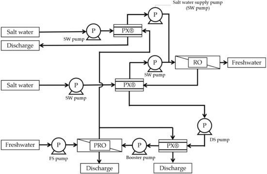 - Lee, S.; Park, T.; Park, Y.-G.; Lee, W.; Kim, S.-H. Toward Scale-Up of Seawater Reverse Osmosis (SWRO)-Pressure Retarded Osmosis (PRO) Hybrid System: A Case Study of a 240 m3/Day Pilot Plant. Desalination 2020, 491, 114429. [Google Scholar] [CrossRef]