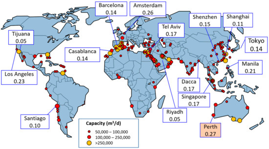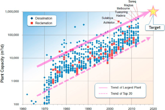 - Elimelech, M.; Phillip, W.A. The Future of Seawater Desalination: Energy, Technology, and the Environment. Science 2011, 333, 712–717. [Google Scholar] [CrossRef]