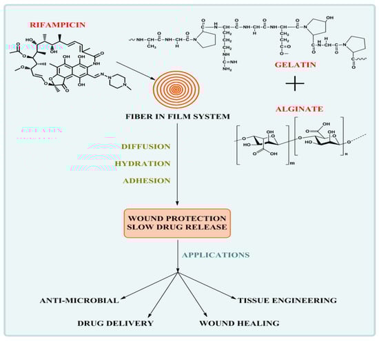 Rifampicin-Loaded Alginate-Gelatin Fibers Incorporated within Transdermal Films as a Fiber-in-Film System for Wound Healing Applications