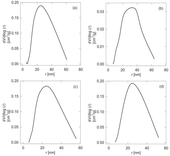 BJH curves for pore distribution visualization of (a) bare PDMS, (b) GMA-DMAEMA 10, (c) GMA-DMAEMA 5, and (d) MMA-DMAEMA 10 membranes.