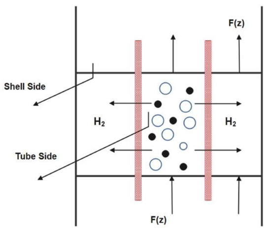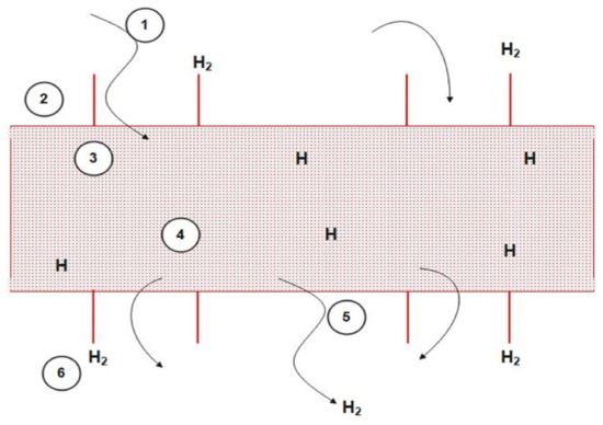 - Sieverts’ law is applicable for hydrogen permeation through the membrane [35] (Equation (1)).