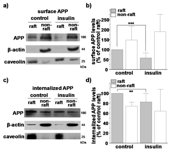 3.1. Insulin Decreases APP Localization in Lipid Rafts