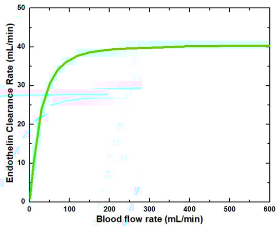 Endothelin clearance rate at various blood flow rates.