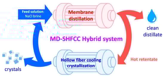 - Luo, L.; Zhao, J.; Chung, T.S. Integration of membrane distillation (MD) and solid hollow fiber cooling crystallization (SHFCC) systems for simultaneous production of water and salt crystals. J. Membr. Sci. 2018, 564, 905–915. [Google Scholar] [CrossRef]