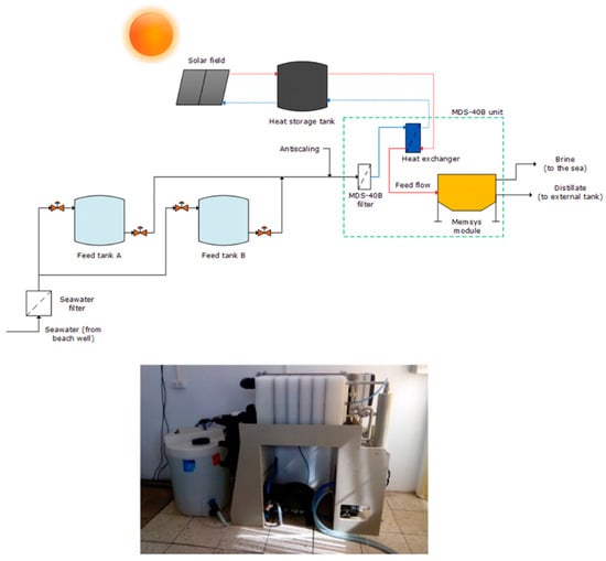 - Andrés-Mañas, J.A.; Ruiz-Aguirre, A.; Acién, F.G.; Zaragoza, G. Assessment of a pilot system for seawater desalination based on vacuum multi-effect membrane distillation with enhanced heat recovery. Desalination 2018, 443, 110–121. [Google Scholar] [CrossRef]