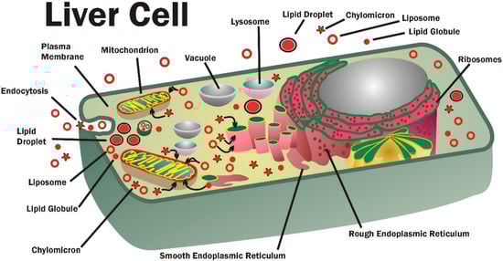 The GPL in small vesicles, lipid globules, and chylomicrons can be transferred by direct contact with intracellular membranes or other lipid structures, and eventually this results in partitioning of their contents into various cellular and organelle membrane compartments [,,,,,]. During this process, GPL can undergo enzymatic modifications, such as head group substitution or modification of FA, to reflect the specific membrane compositions at their final destinations. Not much is known about the roles of small GPL micelles, vesicles, and globules inside cells, but additional information has been published on larger lipid structures such as chylomicrons and lipid droplets [,]. Intracellular lipid droplets have been defined as structures composed of neutral lipid cores that are surrounded by a layer of PC, PE, PI, and smaller amounts of other GPL and a protein outer surface. The outer surface protein coats of lipid droplets may be used to regulate their size, structure, number, and fate of these lipid storage systems []. Lipid droplets are used as the principle lipid storage system in certain cells: adipocytes, hepatocytes, and other cells (Figure 1). They also play important roles in cellular lipogenesis and homeostasis [,]. As lipid storage systems, lipid droplets are important in metabolic syndrome (MetSyn), fatty liver diseases, steatohepatitis, atherosclerosis, and other diseases [,].