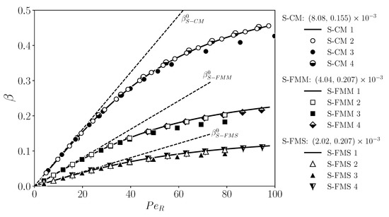 associated with a Hagen–Poiseuille-type quadratic velocity field inside the CM, FMM, and FMS channels occurring for and . The brackets denote the channel-length average,