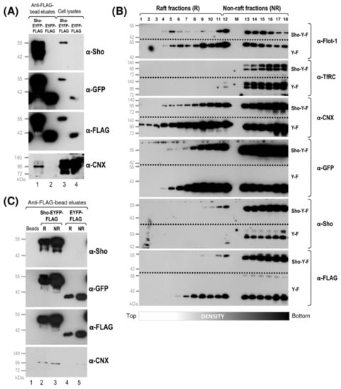 3.2. While Sho and PrP Are Membrane-Raft Localized, They Are Present in Non-Raft Membrane Fractions as Well