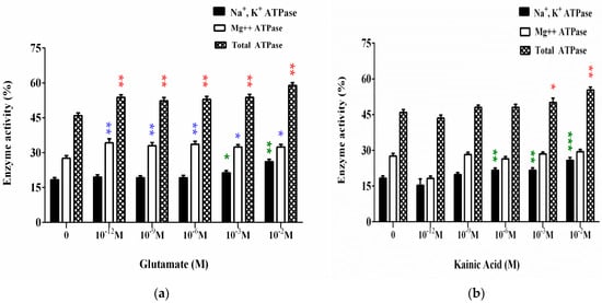 3.1. Effect of L-Glutamate and Kainic Acid on the Adenosine Triphosphatase Activities on Synaptic Membranes (ATPase Assay)