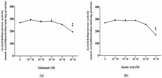 3.2. Influence of L-Glutamate and Kainic Acid on the Enzymatic Activity of Brain Acetylcholinesterase (AChE)
