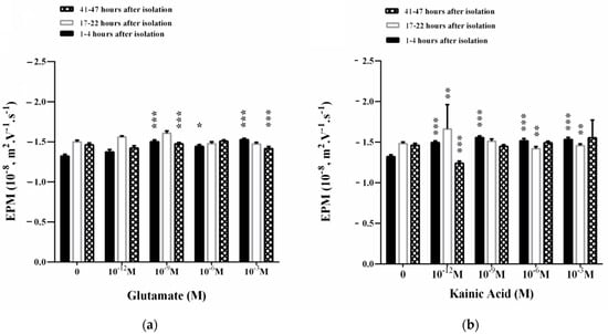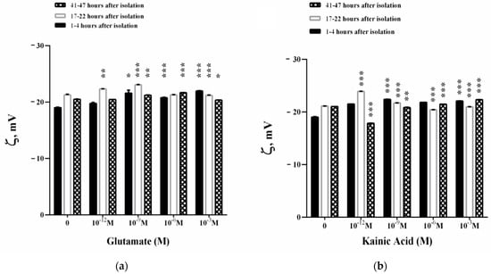 3.3. Influence of L-Glutamate and Kainic Acid on the Electrokinetic Parameters of Synaptosomes