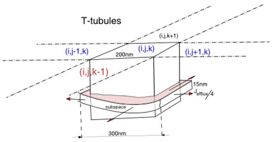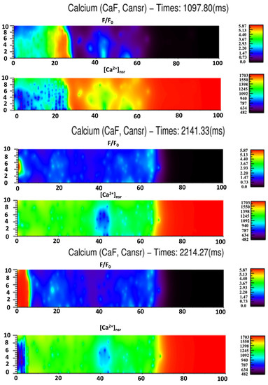 For atrial cells, due to the lack of the transverse T-tubule system or reduced T-tubule presence and altered properties, the physiological activation of the contraction process requires the propagation of Ca2+ in the form of Ca2+ waves from the sarcolemma to the interior of the cell [30,31]. Thul and co-workers developed a 3D model in which the stochastic nature of Ca2+ release was simply modeled using a threshold model in which a random variable is generated to determine whether Ca2+ is released or not [32].