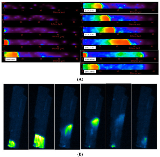 - Berlin, J.R. Spatiotemporal changes of Ca2+ during electrically evoked contractions in atrial and ventricular cells. Am. J. Physiol. 1995, 269, H1165–H1170. [Google Scholar] [CrossRef] [PubMed]